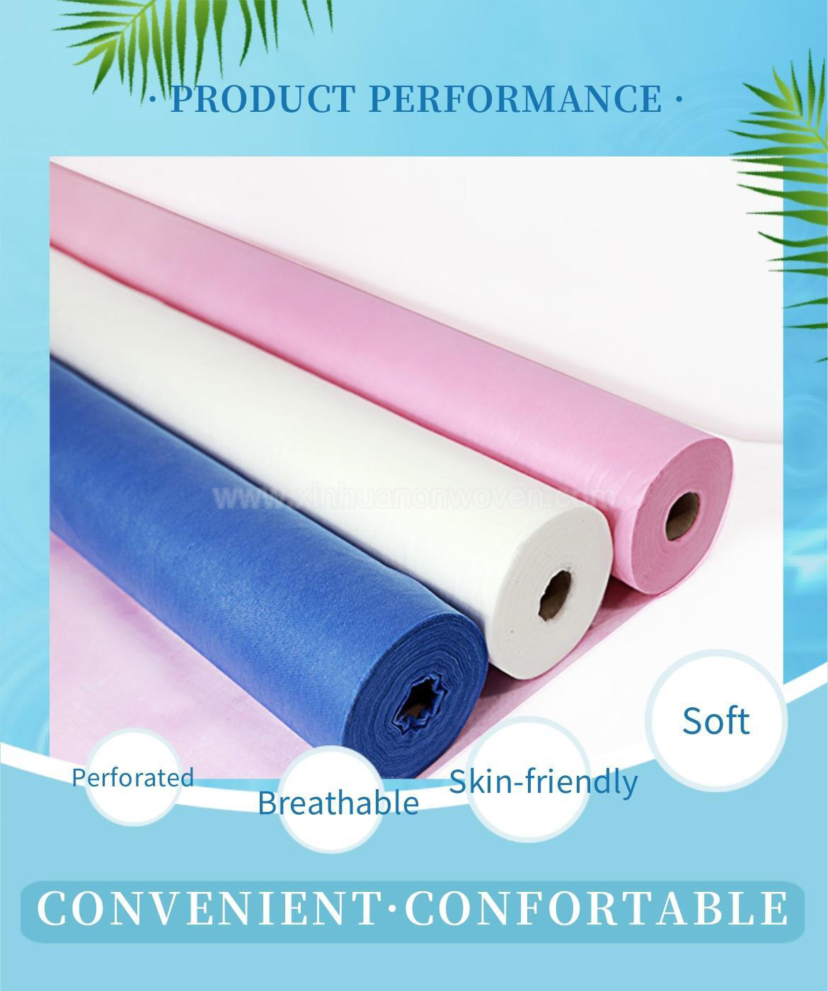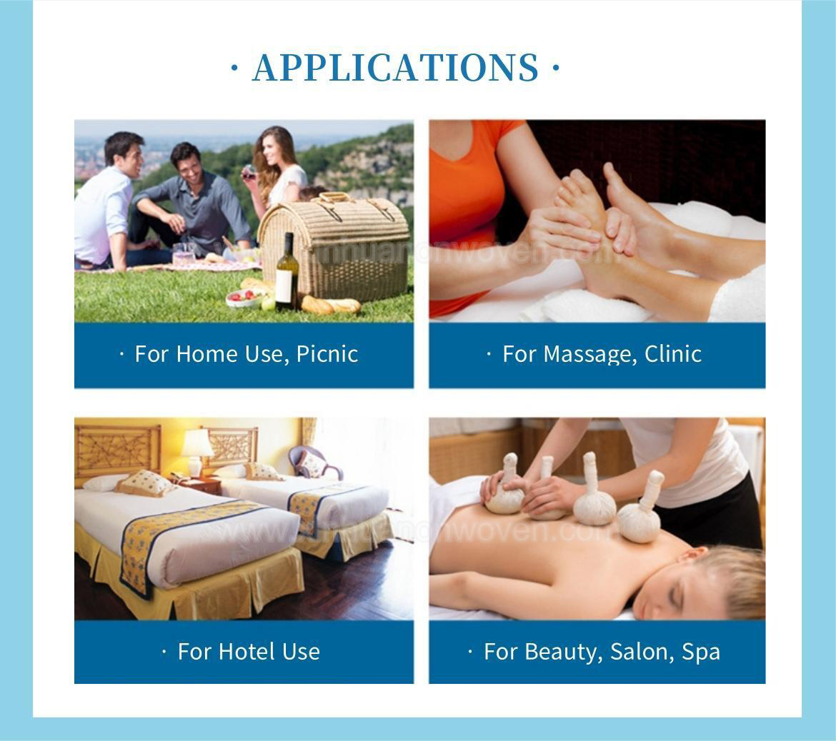 Nosso lençol de tecido não tecido São ideais para salões de beleza e spas. Macias e confortáveis ao toque, não fazem barulho, não amassam e não deslizam como lençóis comuns. O design descartável garante um ambiente limpo e higiênico, evitando a contaminação cruzada causada pela reutilização.
